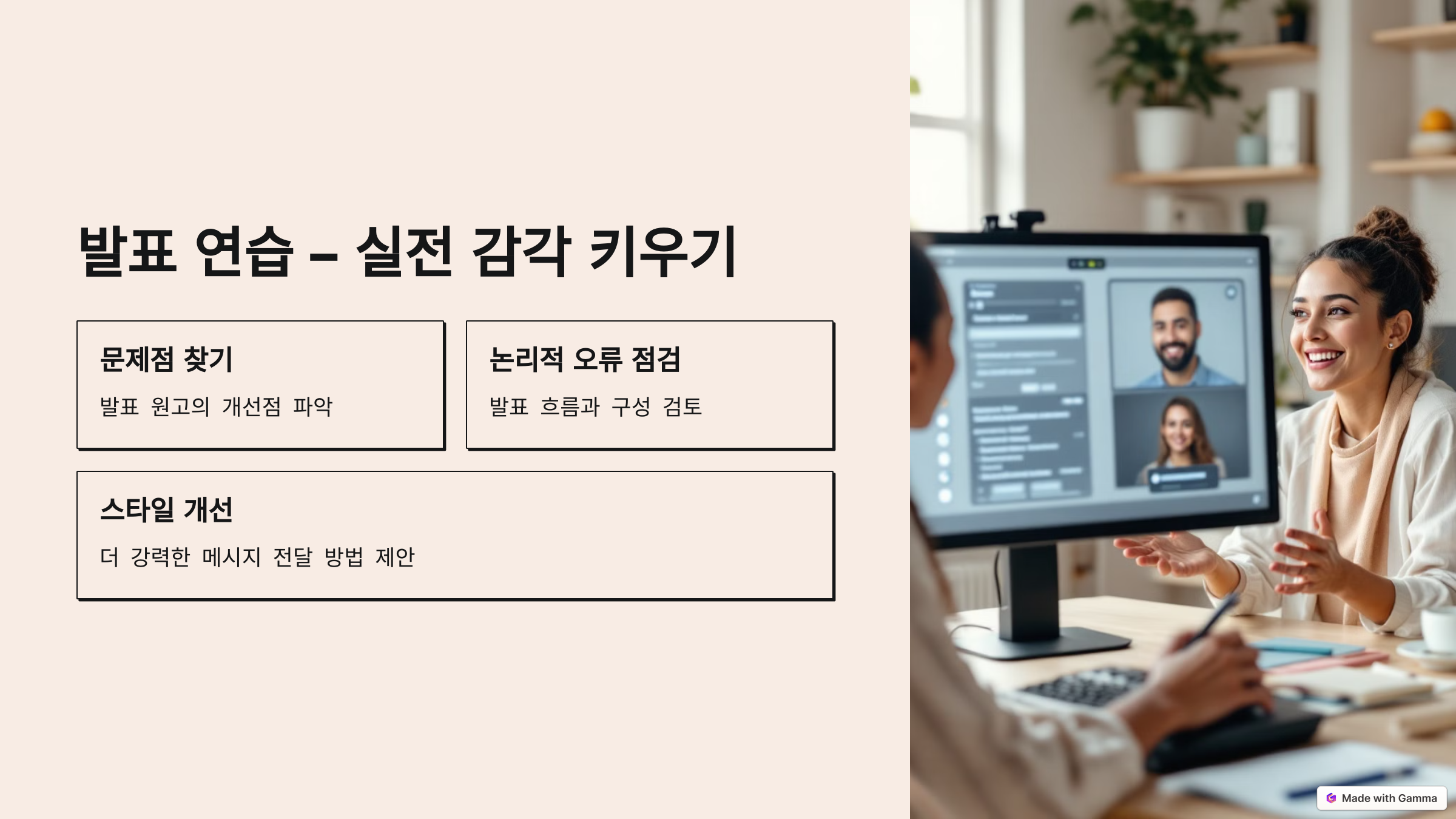 발표와 면접은 단순히 암기하고 연습하는 것이 아니라, 논리적인 사고력과 자신감을 필요로 합니다.